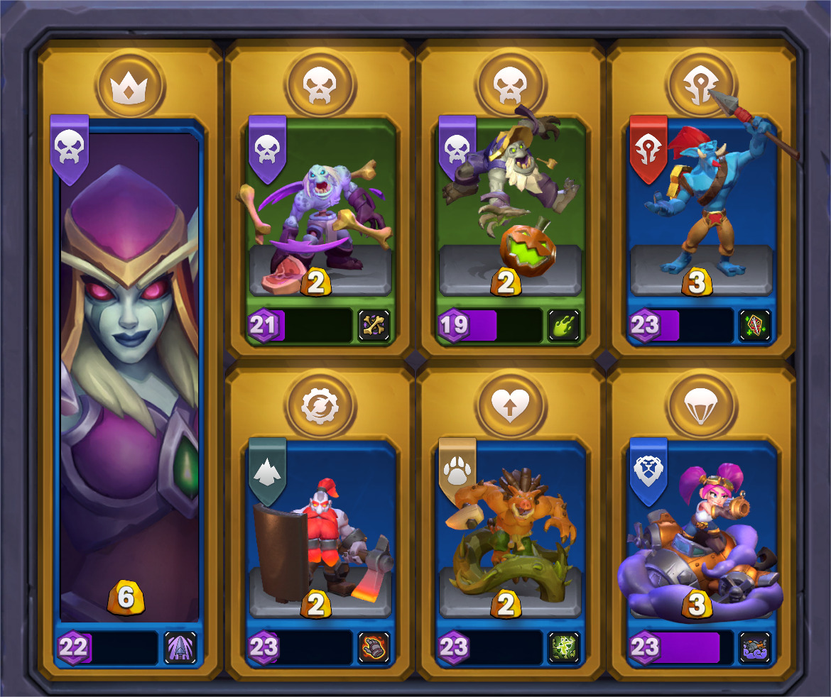 4号位,刷新位替换有狮鹰,毒刺客,黑铁矿工,如果你感觉输出不够,可以像我的DK一样带上毒鸟人,配合野猪转身打输出,在我之前的野兽周的视频里有介绍