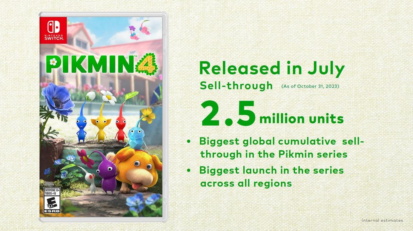 · 《皮克敏4》销量达到250万,是系列最畅销的游戏,并且在所有地区的首发销量都超越了前作