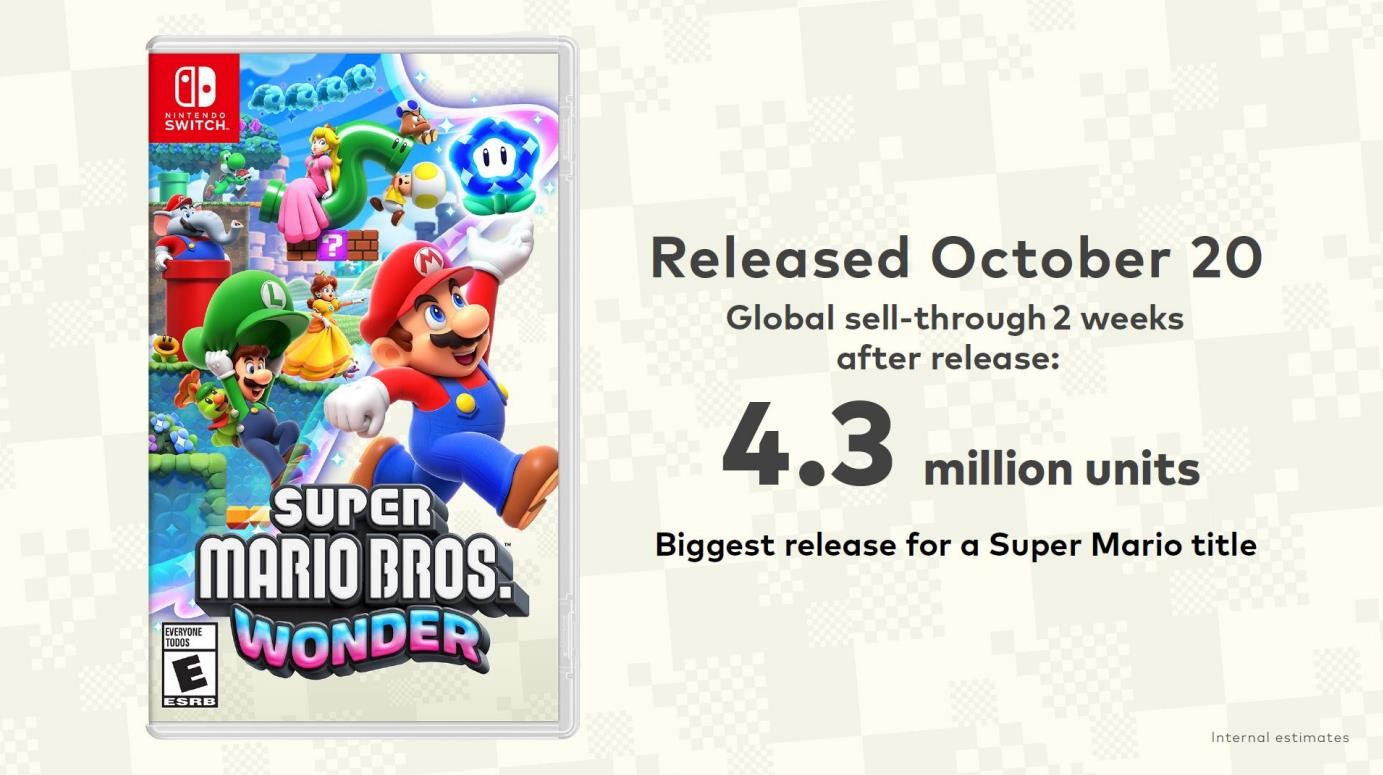 · 《超级马里奥兄弟:惊奇》前两周销量突破430万,是马里奥系列销售最快的游戏