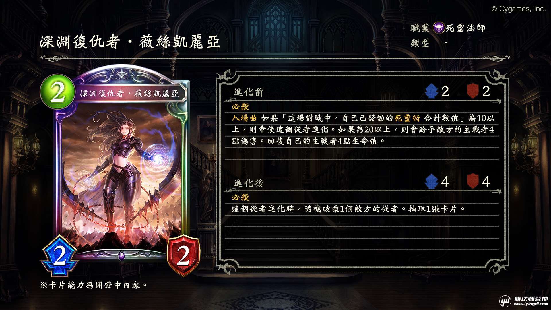 入场曲 死灵术4;获得「不消耗进化点即可进化」效果。(1回合中依旧只能进化1张卡片)