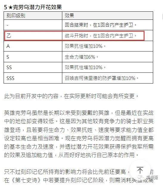 官方公告里举出的例子是五星角色克劳乌,玩家指出,其B级刻印在肉眼可见上会有提升,换在“命座”语境中应该就叫“二命质变”了。