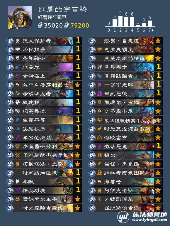之前的构筑里,我带了定罪和守护者的力量。定罪原来是用来5-6费中期给压力斩杀,但是在低段位快攻较多,调整为3费印牌的新宇宙牌,给自己多抽牌的机会,相当于一回合拿两张,并且站场。打后期卡组这张卡极大增加厚度,有些关键随从沉底后可以拍两次以上,非常好用!守护者的力量是打快攻很好用,但是后期场铺起来纯负面效果,换成了新雷诺,清场加锁格子。原本我以为新雷诺清空面板,可以把奥秘、武器都清空,结果只能清场面和地标,害得我有两把差点翻车。我觉得新雷诺对于宇宙骑解场并返场的思路不是很相符,费用也很高,锁格子只能出一个怪,群解法术不能防,如果想要靠压新雷诺,把对面压死的概率是很低的。所以这张卡优先级不是很高,但是可以防塞布和奥秘,处理亡语怪,打后期卡组的作用还是可以给到3.5分的。