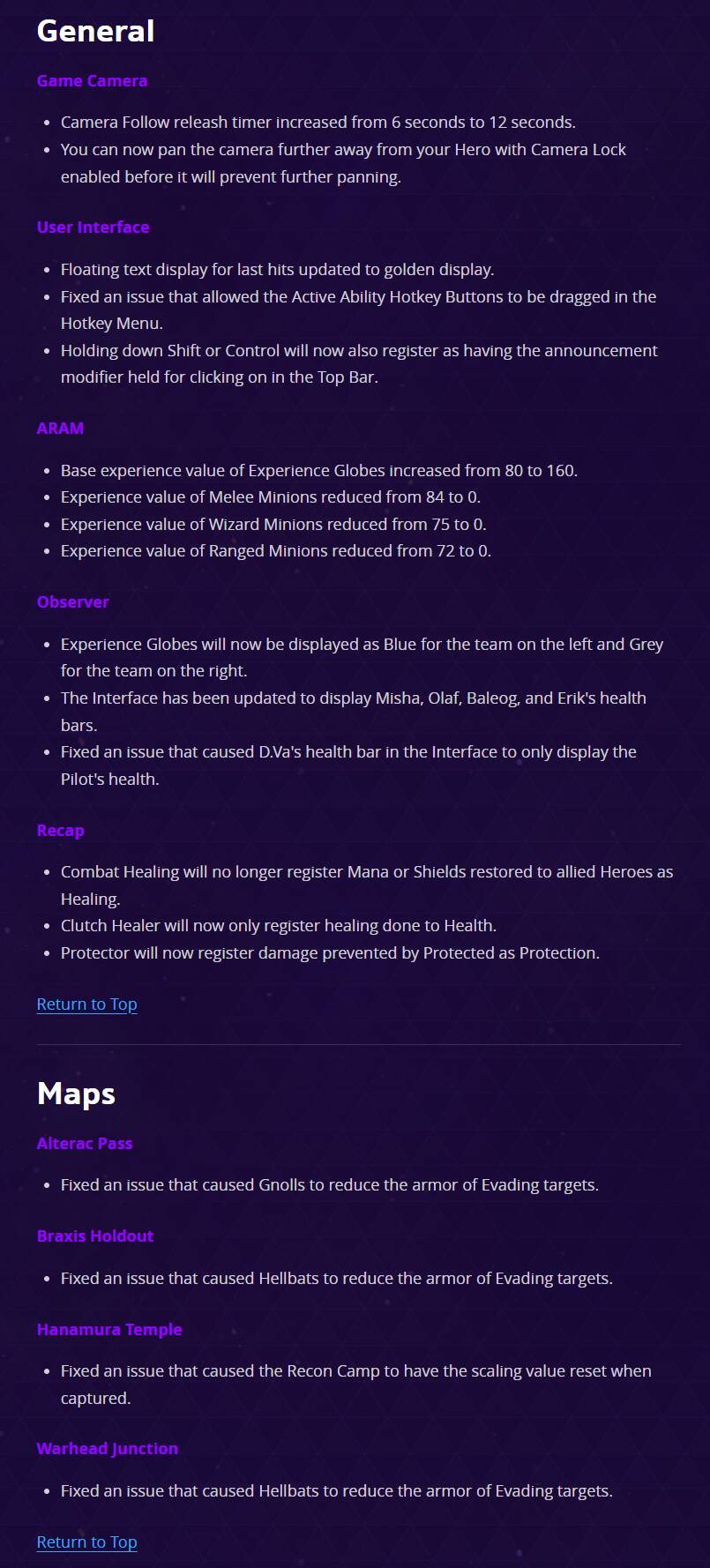 此外,暴雪还对一些地图进行了修改,大部分与野怪的行为有关。游戏内镜头和用户界面等内容也进行了许多常规性调整。