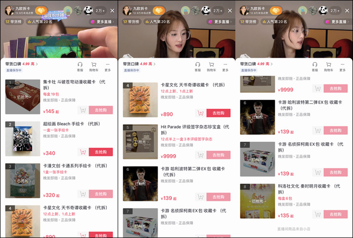 大家在直播间里下单了卡包之后,主播就会在直播间里帮拆卡。