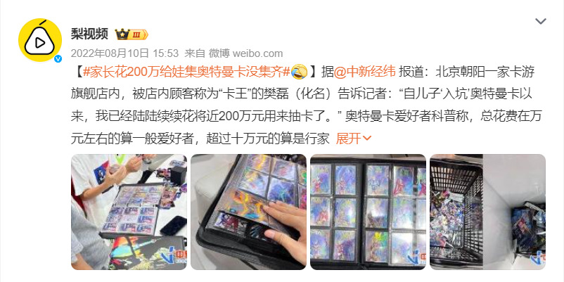 在最下游,有很多人趁着市场火热,来搅混水、炒卡赚钱。他们会利用囤货、营销的方式,来变相抬高卡片价格。把买卡**,玩得像炒股一样。