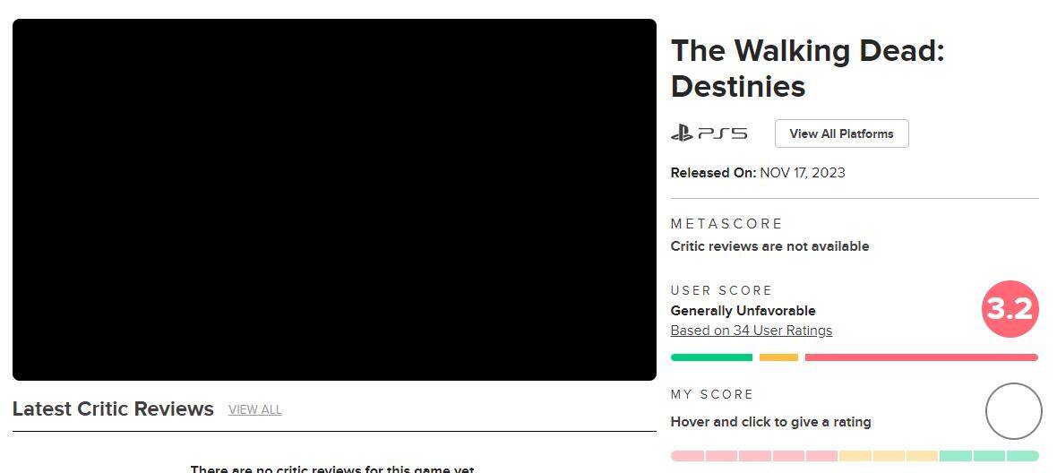 不过《行尸走肉:命运》目前在M站上的评分只有3.2分,似乎有机会挑战年度粪作的名头。