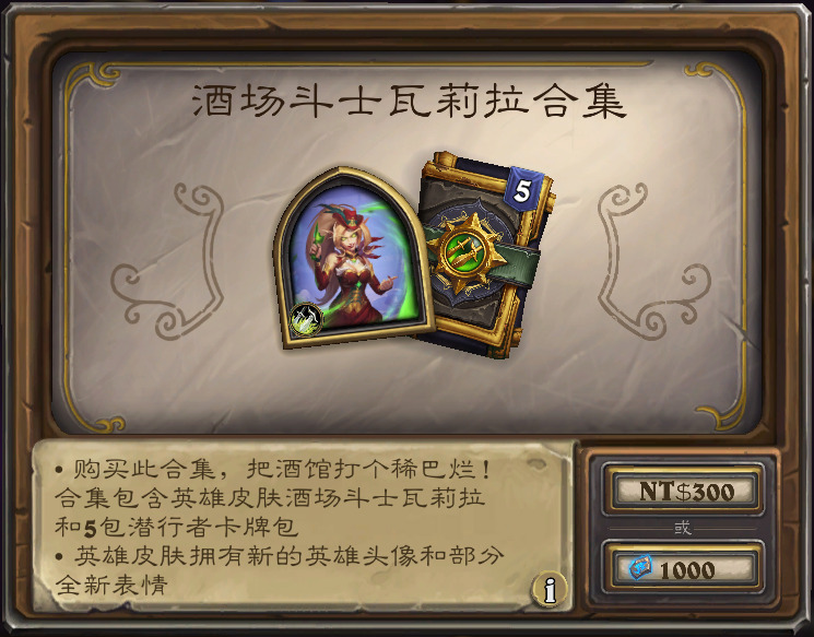 含构筑模式盗贼新皮肤“酒场斗士瓦莉拉”和5盗贼包,售价1000符文石。