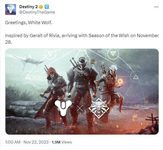 Bungie官宣了《命运2》的下一个联动活动,《巫师》系列中的杰洛特将会以皮肤的形式将会出现在这款科幻FPS中。