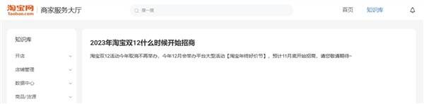 据新浪科技的最新报道,淘宝商家服务大厅显示,今年双12活动取消,更改为平台大型活动“淘宝年终好价节”,预计11月底开始招商。