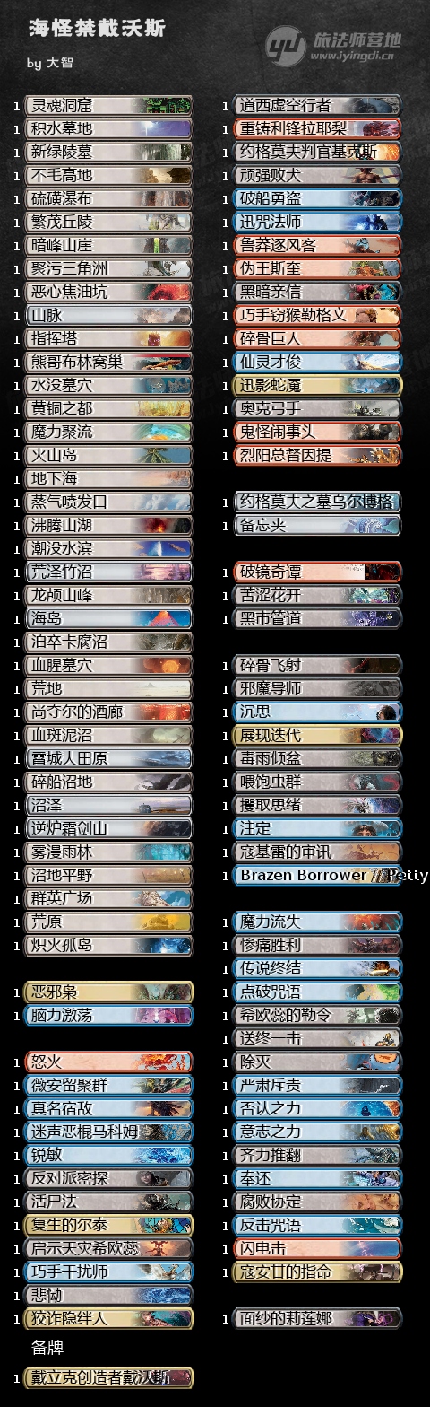 三轮下来我整体对于戴沃斯的表现还是比较满意的。格力极色组作为传统控制色组,不乏优秀的去除和反击咒语,其代表指挥官仪法大师因娜拉也是小黑屋钉子户。但一直以来格力极在控制端就会被白色诸如化剑,最高裁决等咒语打压,使其总成为次一级的控制选择,所以一个摆脱控制框架的格力极主将就会被各种给予厚望。之前奇奇和梅泽吾就被广泛开发,但是由于太过背离格力极的特色导致套牌构筑总是不阴不阳,其中最大的问题就在于主将的异能是必须在场触发,纵使回报颇高,但格力极三个双色,也就红黑能够有相对不错的支持。