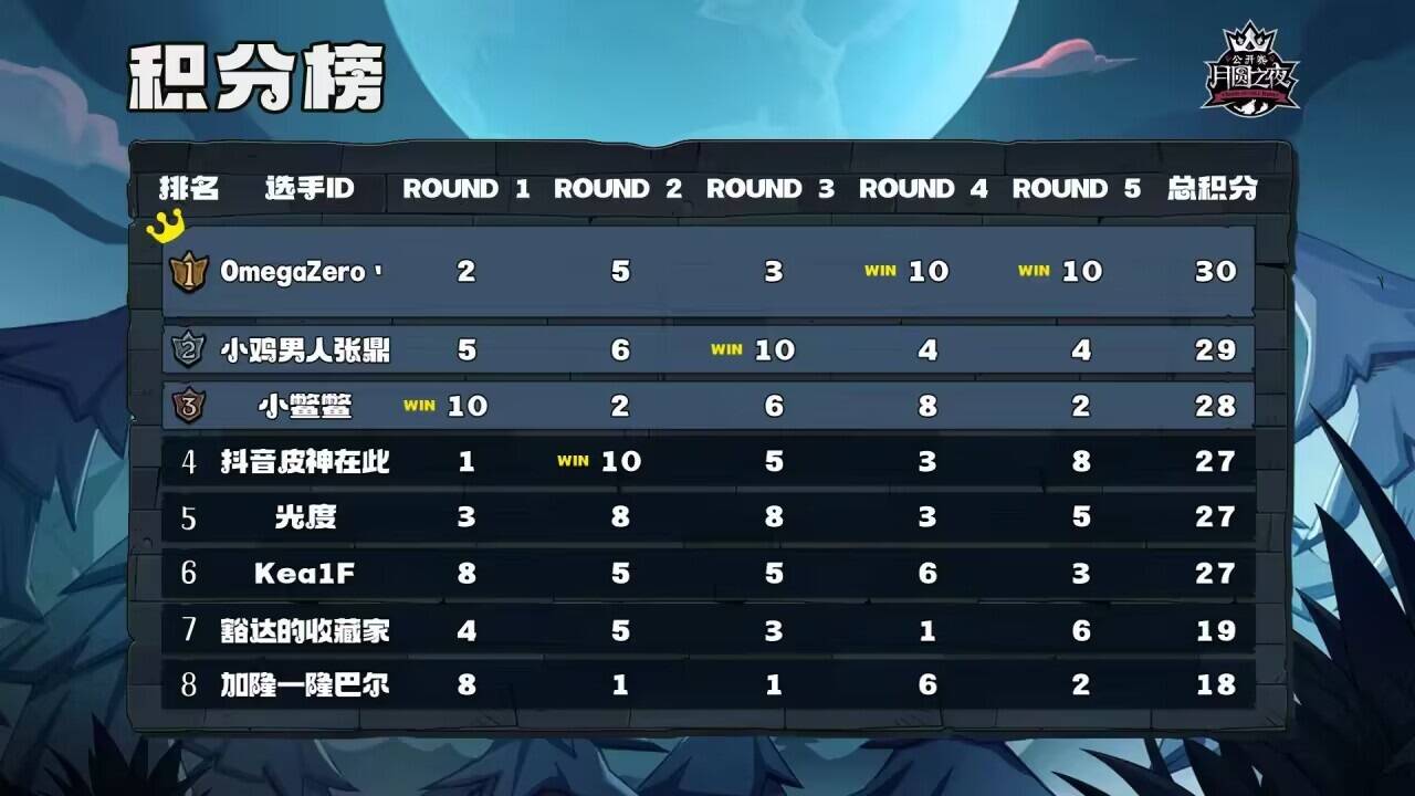 第四局比赛开始,随从池为:龙、野兽、战士、幽灵。绝境之下OmegaZero选择在前期稳定血量的前提之下大胆上本,追求吃鸡效率更高上限更强的幽龙体系,早早到手的噬魂之龙为后续成功吃鸡奠定了基础。最终局OmegaZero选手仅20积分,想要夺冠必须吃鸡登顶,而本局比赛随从池为:幽灵、机械、野兽、战士。暂列积分第一的“小鸡男人张鼎”选手在最终局选择更为稳妥的护盾战士流派,在前期遗憾第五早早出局,最终总积分29分。而OmegaZero则神之一手从野兽转型机械套娃,传统护盾战士流在对抗上限频率更高的机械套娃体系并不能提供更多的输出,最终OmegaZero连下两成,以30分成功夺冠!