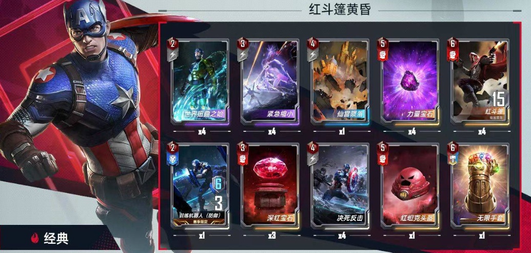 4张扭曲推荐在15费以上时使用。1张机器人加强前期战力。4张缩小尽量不要空,现在大家都是红斗篷,比较好根据对方上回合战力判断本回合能否打过,而且本卡组中期几乎谁也打不过,缩小中期几乎可以无脑用。4张力量宝石必备,滤卡+涨战力。一张给红斗篷抢先制,海拉必带一张,剩下的看情况给苏特和刽子手。1张头盔给苏特,确保苏特能启动。4张红斗篷不用多说。最后一张6费最好是4张心灵宝石,配合夜巡针对敌方关键角色(我没带是因为我没有...)