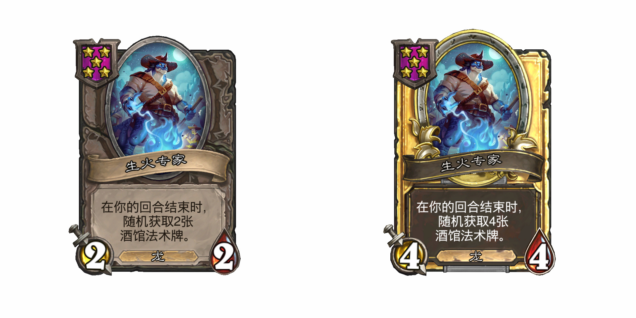 - 5星2/2龙,在你的回合结束时,随机获取2张酒馆法术牌。