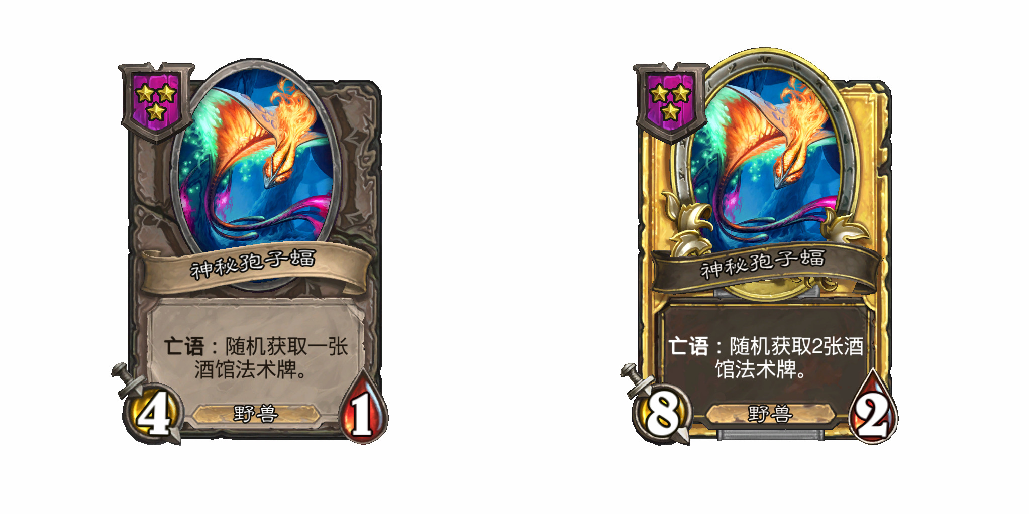 - 3星4/1野兽,亡语:随机获取一张酒馆法术牌。