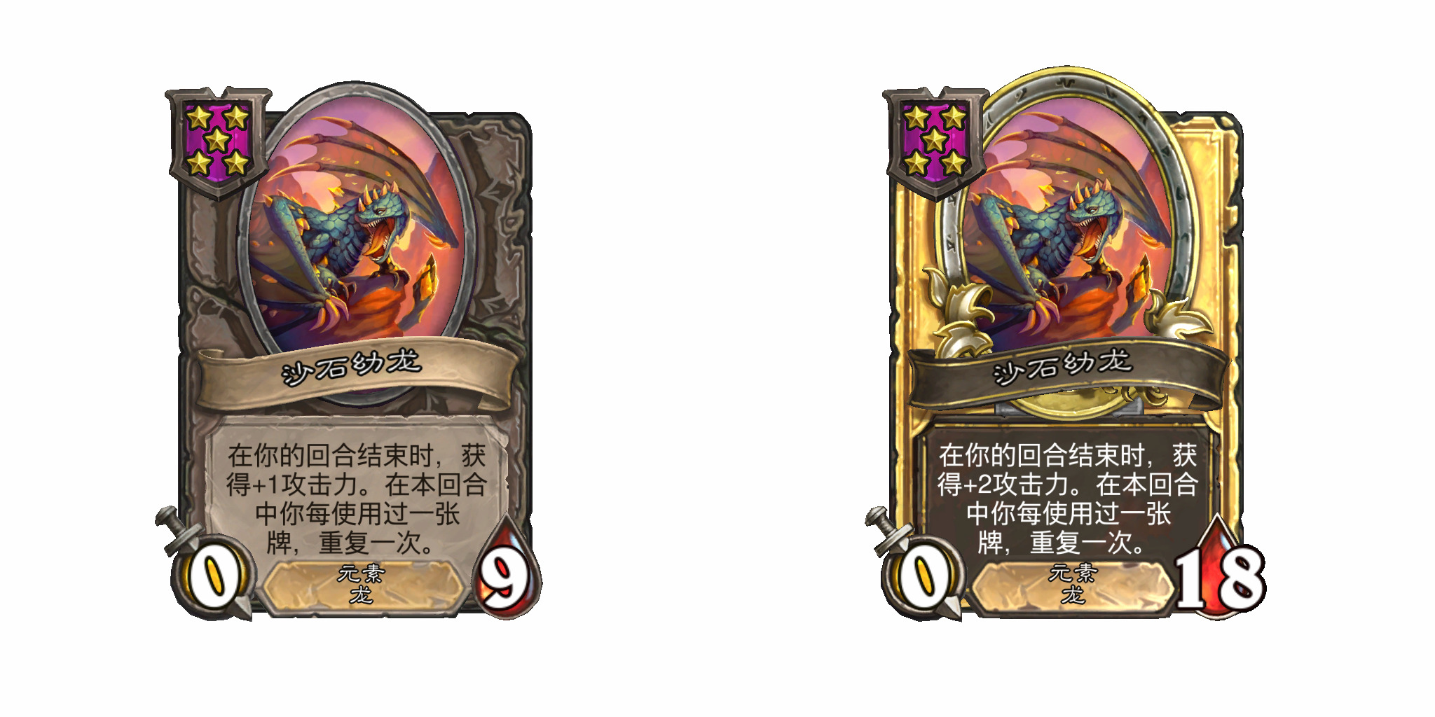 - 5星0/9元素+龙,在你的回合结束时,获得+1攻击力。在本回合中,你每使用过一张牌,重复一次。