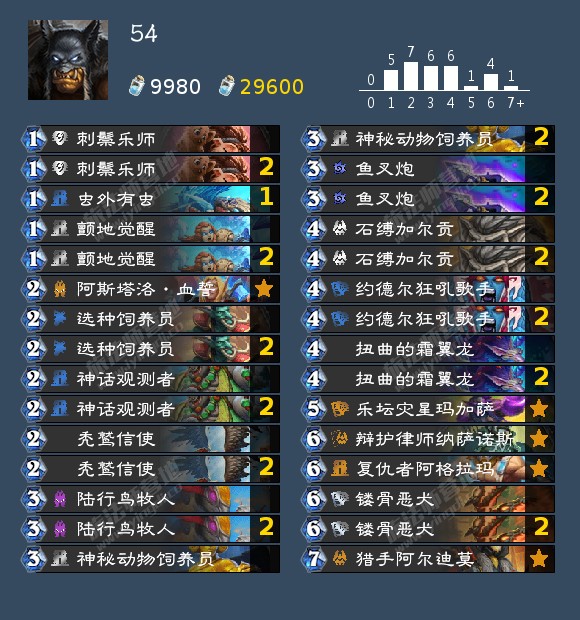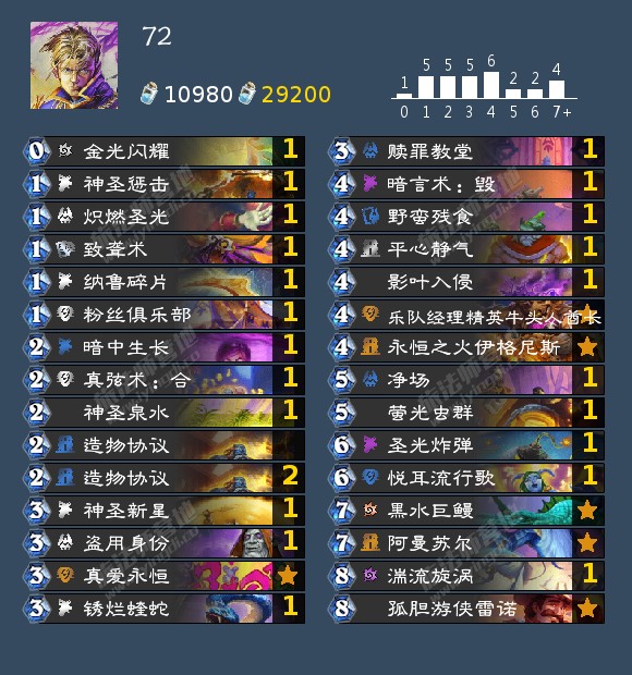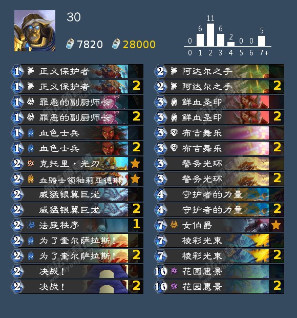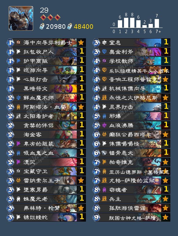 这次上线的补丁似乎影响不是很大,术士蛇之前就基本上没什么人玩了,现在虽然改回四费,但似乎也没把术士拉回正常水平,毕竟10太强了,但7又是一个比较微妙的数字。瞎子的削弱影响不大,猎人的削弱倒算是还行,圣骑士削了倒抽也就是削了上限,还是挺强的。总之总体影响还是不大的,貌似过段时间还有补丁,我比较希望看到有的弱势卡组被加强,貌似只削强的带来的环境变化不大呢。对卡组有疑问或想了解详细构筑的可以评论区问问,或者直接看网站 https://hearthstone-decks.net/,同时以后应该也会以网站数据为主,个人理解为辅讲解搬运卡组,同时隔壁b站会不定期直播:不知所措某萌新的个人空间_哔哩哔哩_bilibili 欢迎大家关注。 (搬运纯属个人行为,有疑问还请联系)