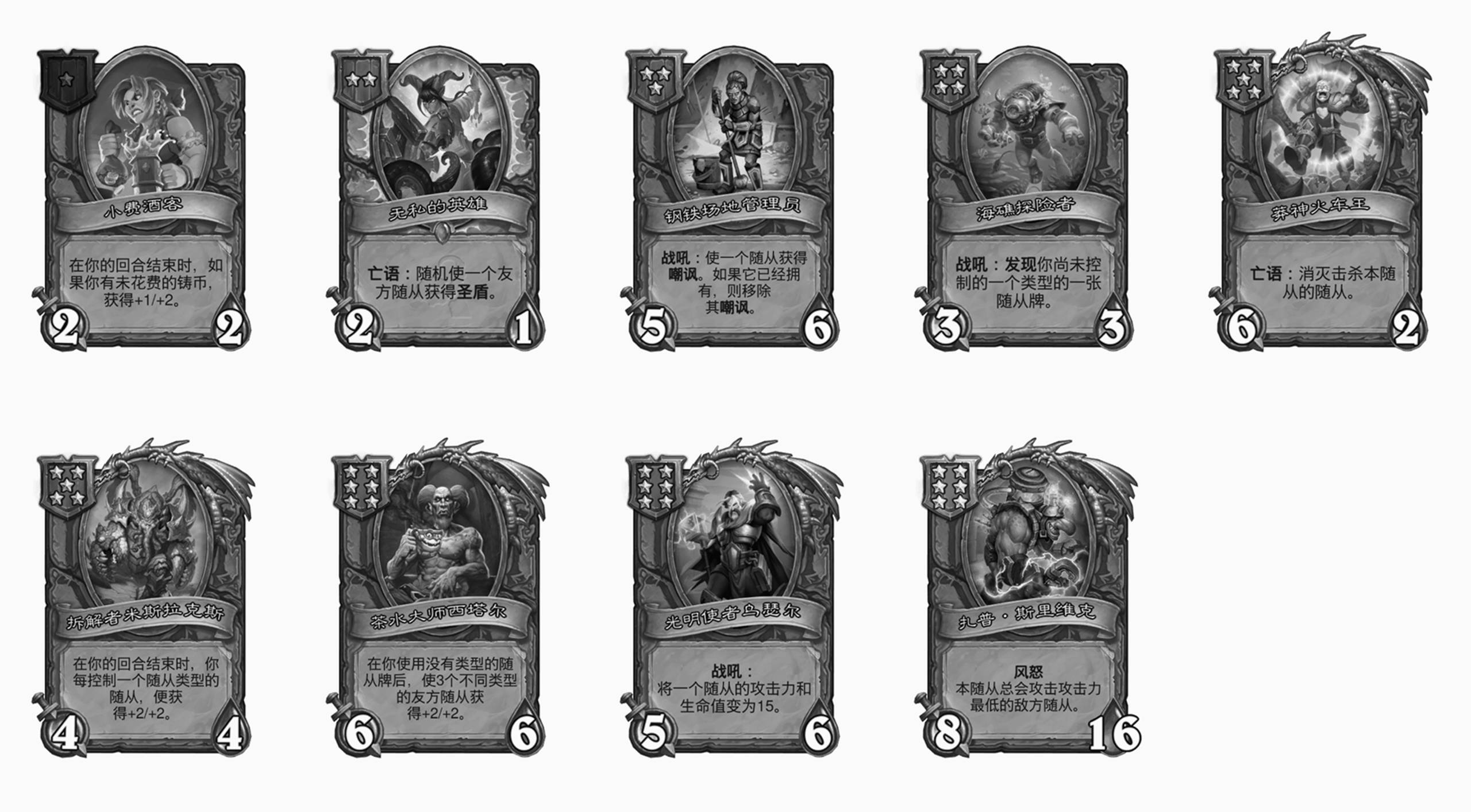 28.2战棋大更新的新随从全部发布的同时,由于参与发布的各主播对新随从以外的随从池更替的介绍参差不齐(有全的,有不全的,还有不提的)而社区又想尽快了解,RidiculousHat按照约定现将全部33个退环境随从重新完整发布了一遍。其中纳迦和野猪人的部分是之前没发布过的信息。