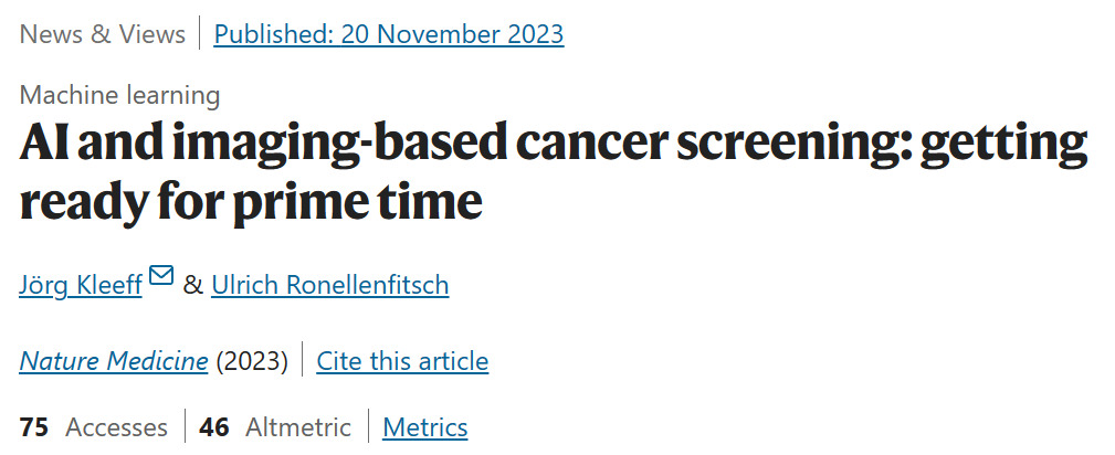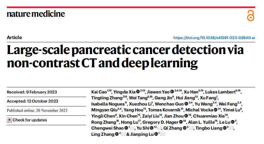 这不在前不久,医学顶刊 Nature Medicine 上就登了一篇论文,说是用 AI 大模型 + 简单的平扫 CT ,就可能大规模地筛查出早期胰腺癌了。