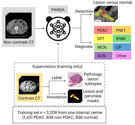 这次,他们整出了个名叫PANDA ( pancreatic cancer detection , with artificial intelligence )的 AI 大模型,根据简单的平扫 CT 图像,它就能做出胰腺癌相关的诊断。