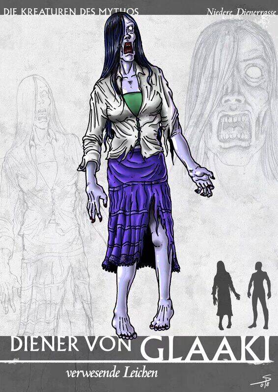 格拉基之仆从(Servantof Glaaki)是旧日支配者格拉基用它的针刺制造出来的不死怪物,属于僵尸的一种。它们与格拉基共有记忆,可说是格拉基的一个部分,但在某种程度上也可以独立行动。别名:格拉基的选民,湖中食尸鬼,怪异者,错误之民。