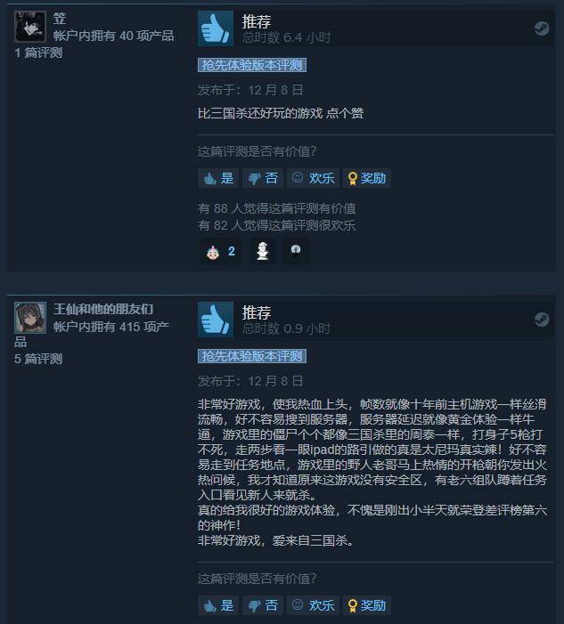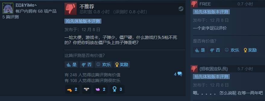从评论区中的评价上可以看出,游戏的平衡出现了问题,有玩家5枪爆头都打不死一只僵尸;