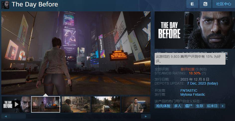 由Fntastic开发、Mytona Fntastic发行的“万众期待”的多人生存打僵尸游戏《浩劫前夕》,终于在近日正式发售,但支持简繁中文,Steam国区售价136元的本作,却在Steam平台光速收获了总体15%好评(截止发文前)的“差评如潮”。
