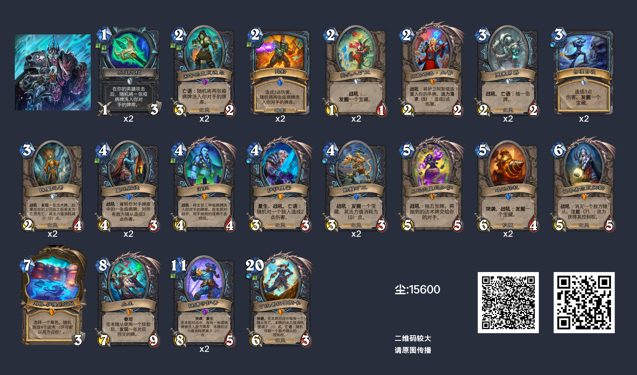 原作者评论:病dk现在很强。我相信我的构筑是完美30张,希尔瓦娜斯在这套牌里目前能起到很好的作用。