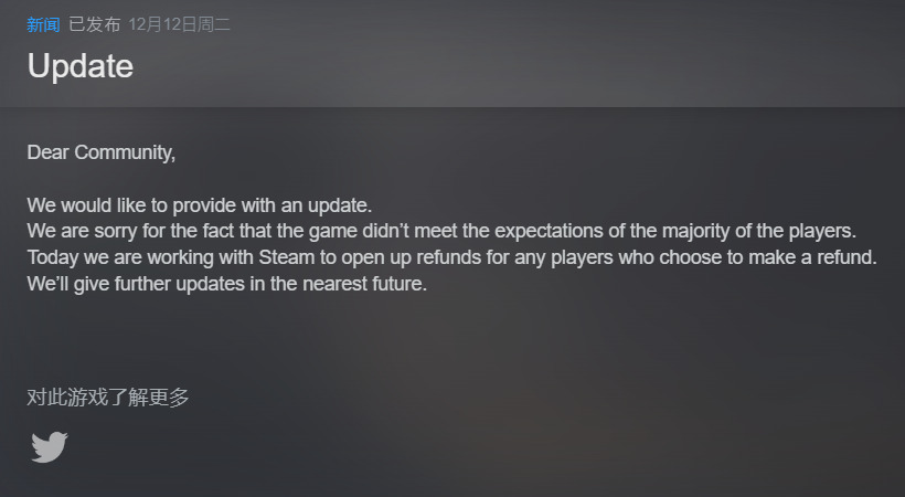 这一切遭遇听起来似乎合乎情理,没钱开发游戏是开发者常见难题,且官方并没有通过《浩劫前夕》做出众筹等看似敛财的举动,还允许玩家无条件退款。但以上种种并没有让他们获得玩家和媒体的同情。