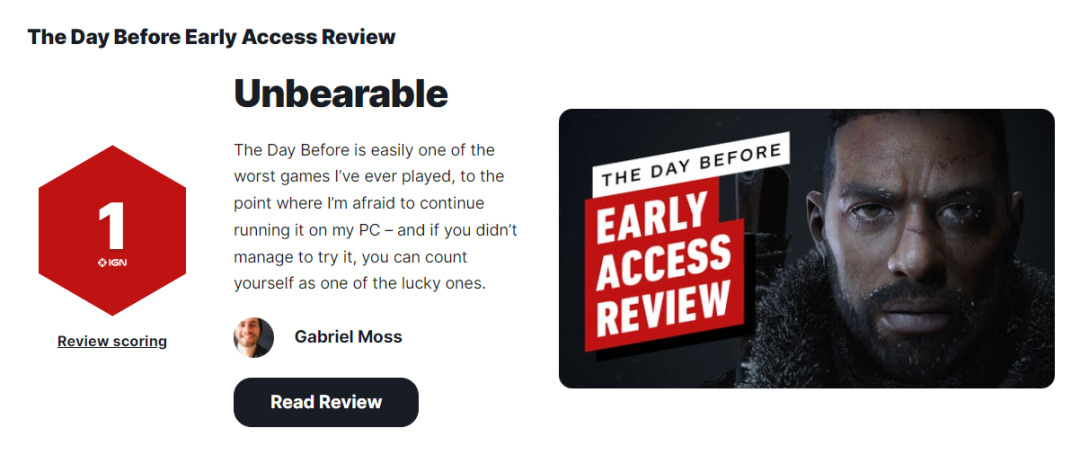 2023年即将结束,这边的TGA算是给年度佳作们定了调,那边的网友们又开始为“年度最***”辩论起来。谁也没想到,在今年最后一个月,还能有“能者”杀入这一行列——刚刚上线不久的《浩劫前夕》(The Day Before),从IGN那里获得了1分的评分。