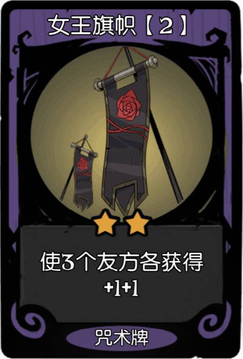 相信很多玩家在一本升二本的时候场上只有一个随从。所以女王旗帜也基本可以pass掉。不过如果你有很多随从的话,女王旗帜还是可以助你一臂之力的!