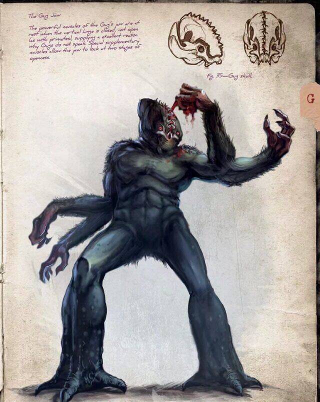 古革巨人(Gug)古革巨人是一个强壮的吃人巨人。由于被诅咒,所以他们只能呆在黑暗的地下。