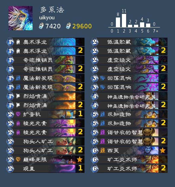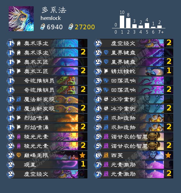 具体构筑方面,还有两个近期兴起的多系法变种在这次比赛里也都有体现。在总共3套多系法里,uikyou带了发掘组件和观星,hemlock也带了观星。