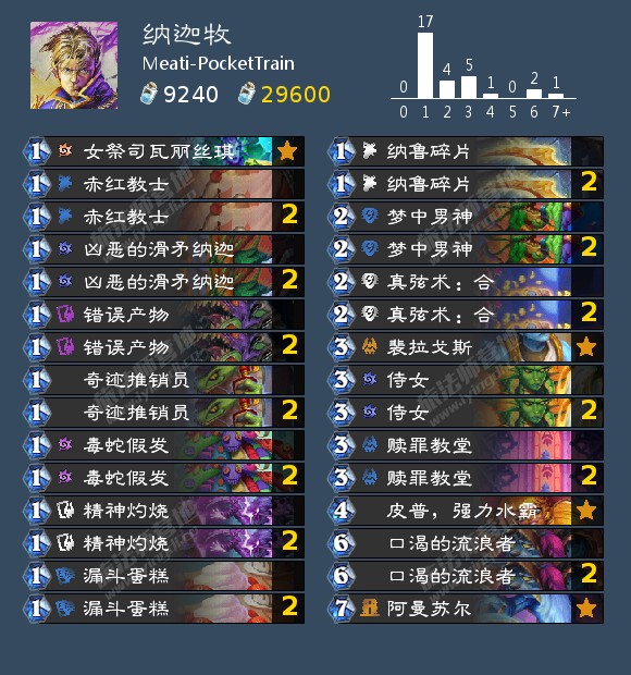 骑士终于在今年的比赛里再次登场了。作为上个平衡补丁里竟然没削的标准第一毒瘤/亲民卡组,光铸花园骑毫不掩饰地人手一套,具体构筑也几乎没有变化。