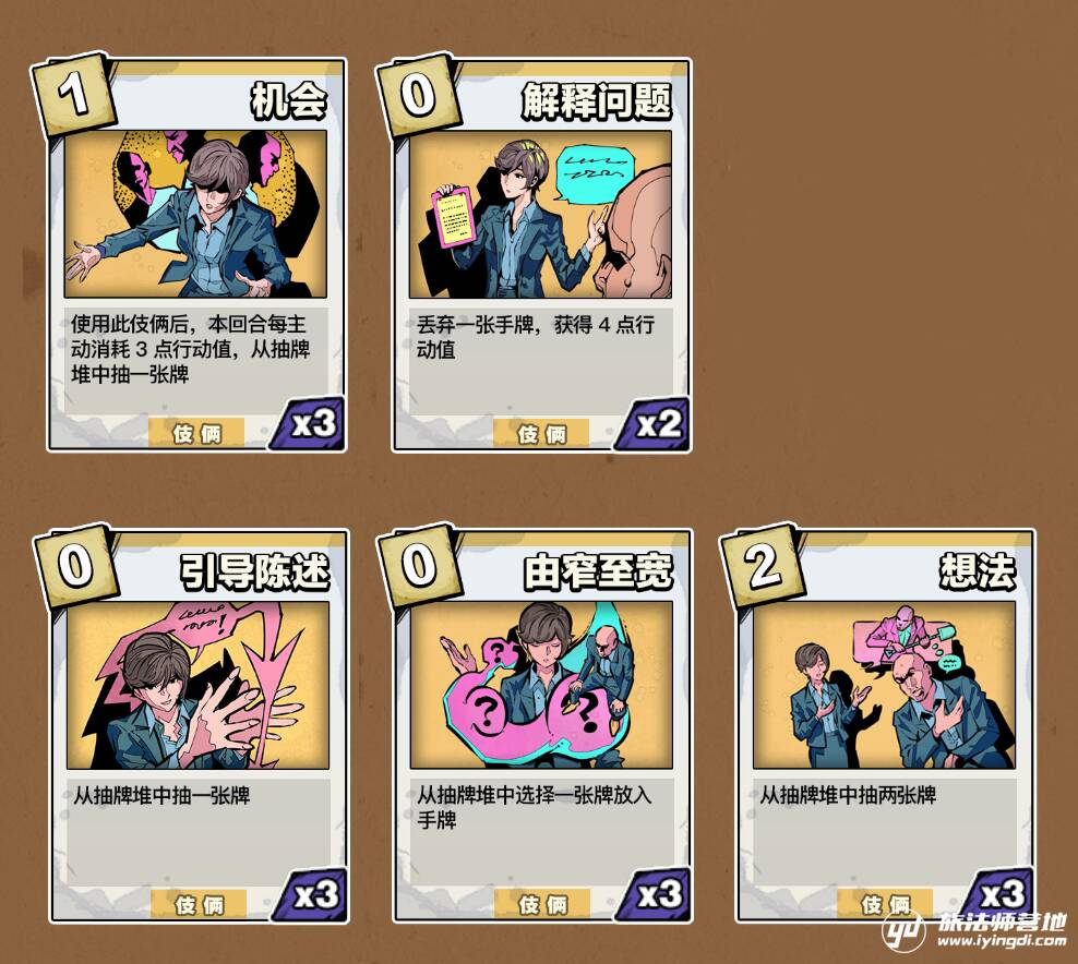 当回合所有分析结束后,保证自己手里能有「机会」、「解释问题」、「想法」各一张,下一轮运转起来就没啥问题了。这套牌组能打过董事长,即便第二轮出现每回合第一张牌无效也没影响(但是要用0行动力消耗的牌来破,或者把手段卡拿去询问),“无限流”都是能运转起来的。