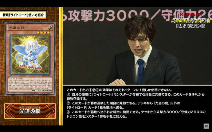 ①:从手卡让其他的1张「ライトロード」卡回到卡组最上面才能发动。这张卡从手卡特殊召唤。那之后,从自己卡组上面把2张卡送去墓地。