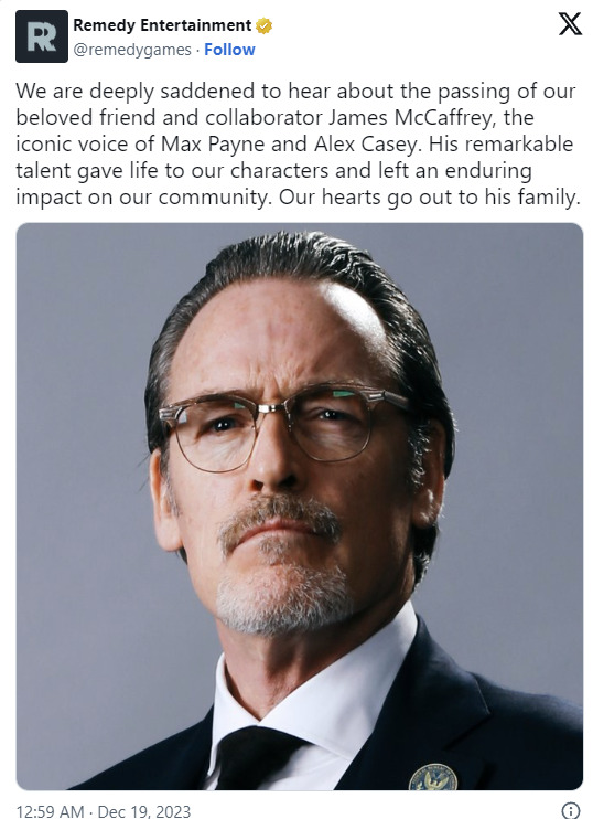 马克斯•佩恩配音演员詹姆斯•麦卡弗里去世