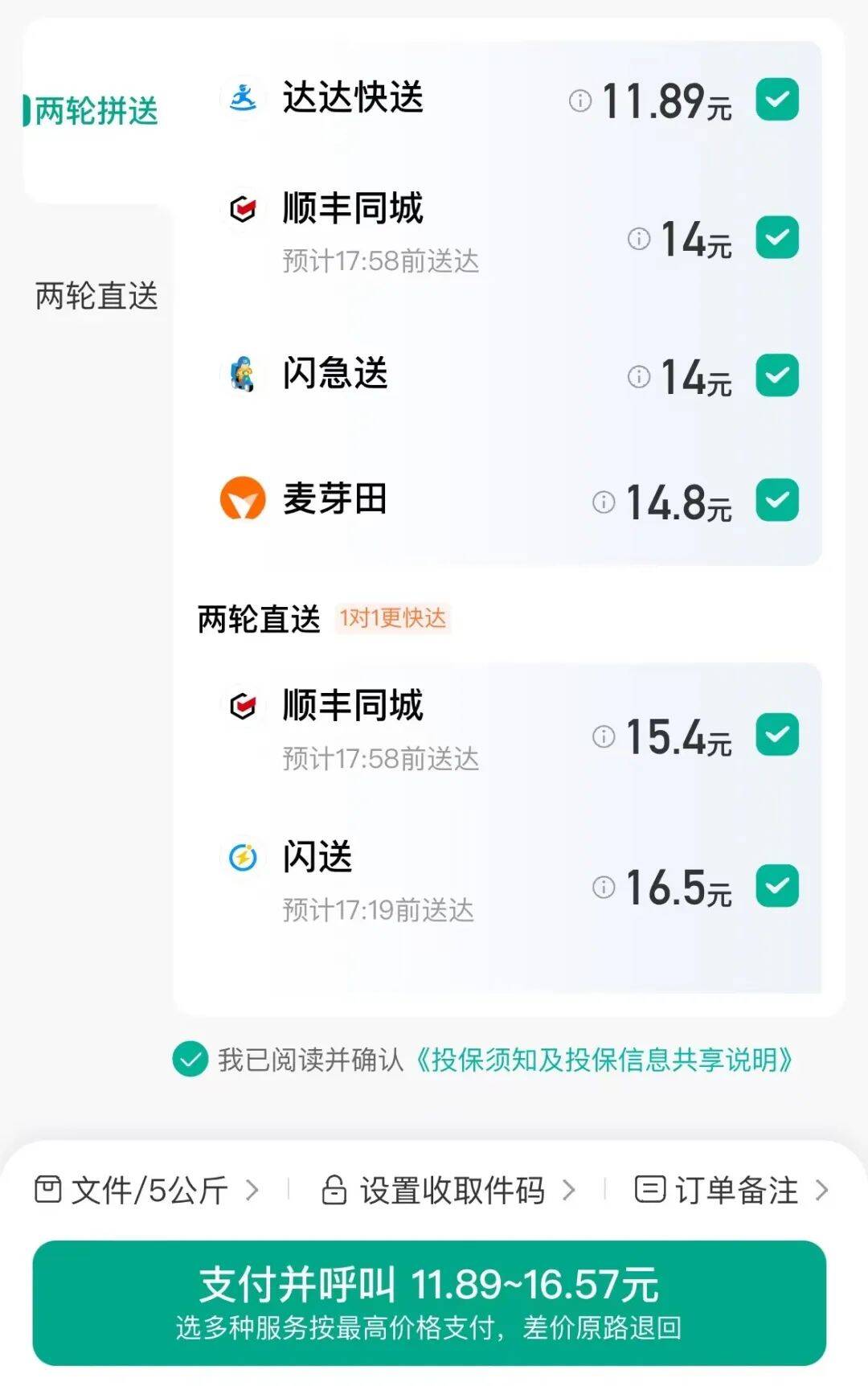 同样,滴滴快送采取的也是聚合模式,当时一上线就接入了达达和闪送,接着又跟顺丰同城和闪急送合作,甚至还聚合了聚合多个跑腿服务商的聚合平台麦芽田,堪称跑腿版俄罗斯套娃。
