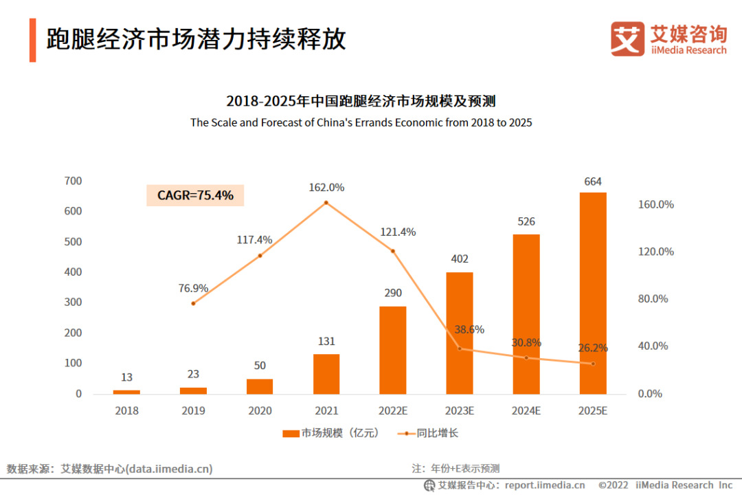 像跑腿这种多场景、非标准化还很分散的需求,频次相对外卖也没那么高,但也是一个不可小觑的市场。