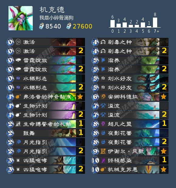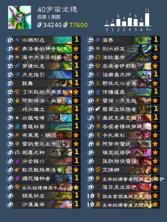 来自疏星丨图图的40宇宙龙德,它使用这套卡组在800名划水(后来换别的卡组上去了),这里主要是分享给指明想要德鲁伊构筑的读者。