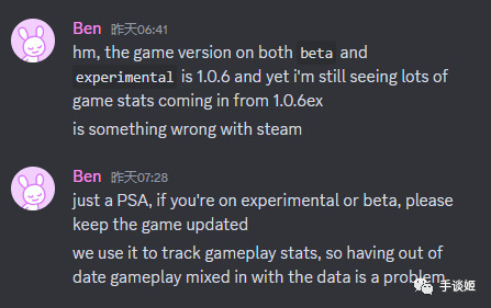 开发者在discord中发布公告,表示希望玩家能够保持游戏更新。他还表示目前新旧版本的统计数据被混合在一起,导致无法进行分析。