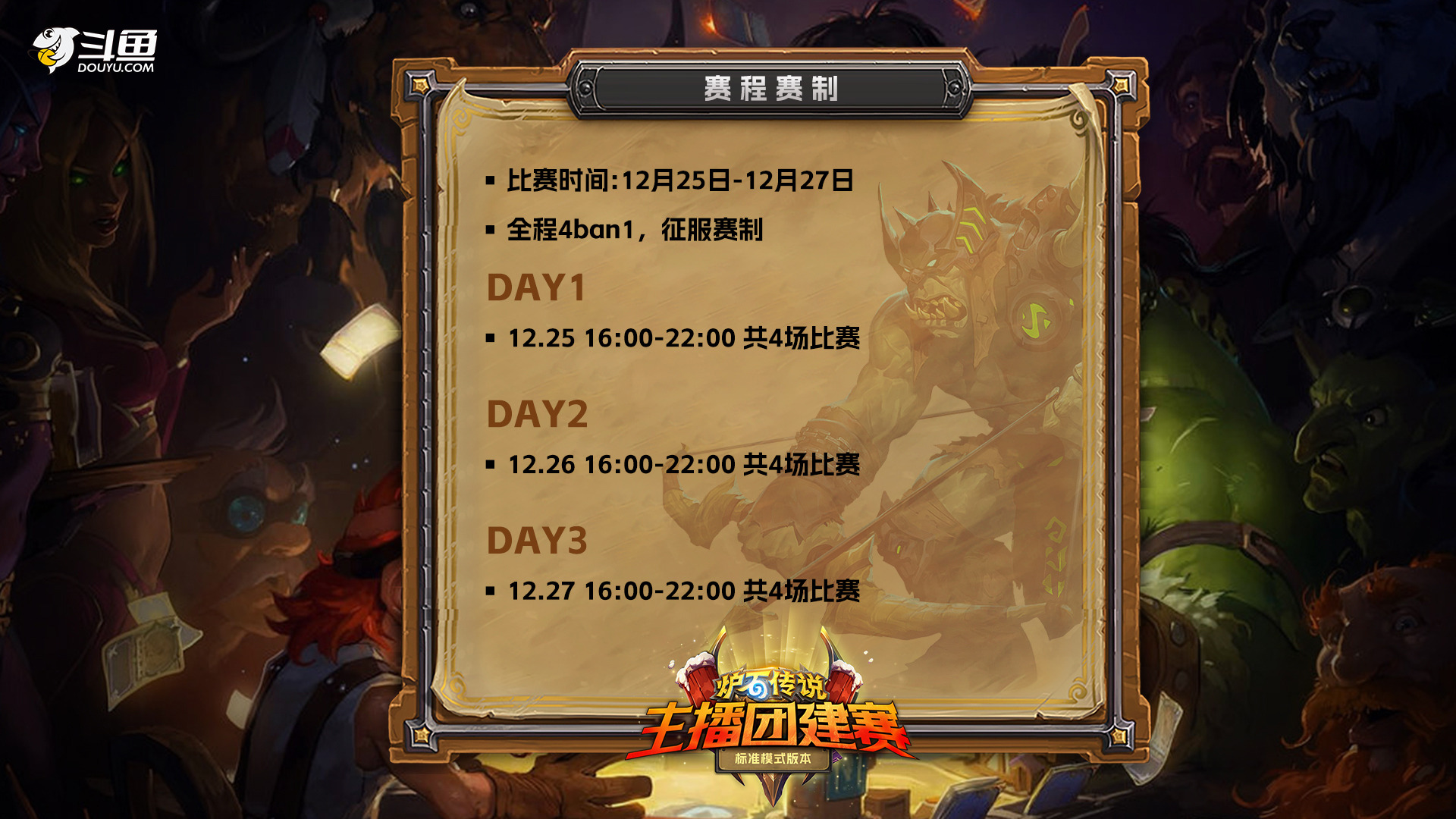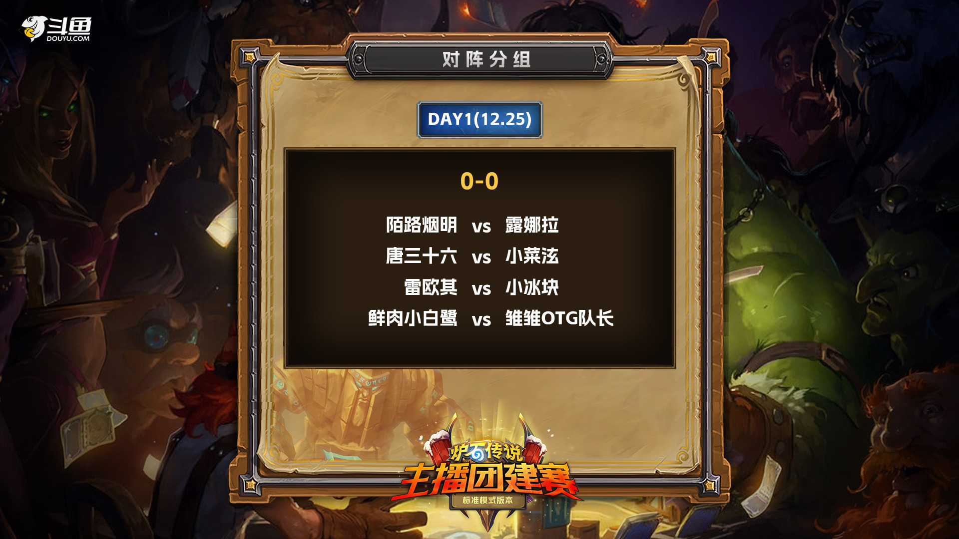 本次我们共邀请陌路烟明、雷欧其、鲜肉小白鹭、炉石唐三十六共4位斗鱼主播,以及炉石露娜拉、炉石小菜泫、炉石小冰块、炉石雏雏OTG队长共4位抖音主播共同参与团建活动,强强对抗,经过为期三天的瑞士轮角逐,将根据主播们的战绩决定最终奖励归属!