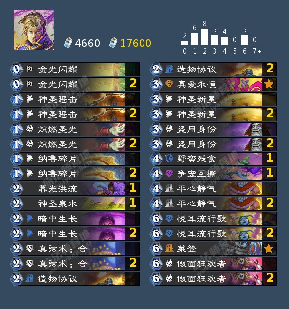 我在美服1k左右打了几十把,基本上可以维持正战绩。今天让驴哥试了试,在美服前20打了个6-5,有一把不是驴哥喜来乐污染了牌库也是稳拿下的。老登射手的事情,结合我和驴哥的情况,不是眉笔的话大概10把上手一把。