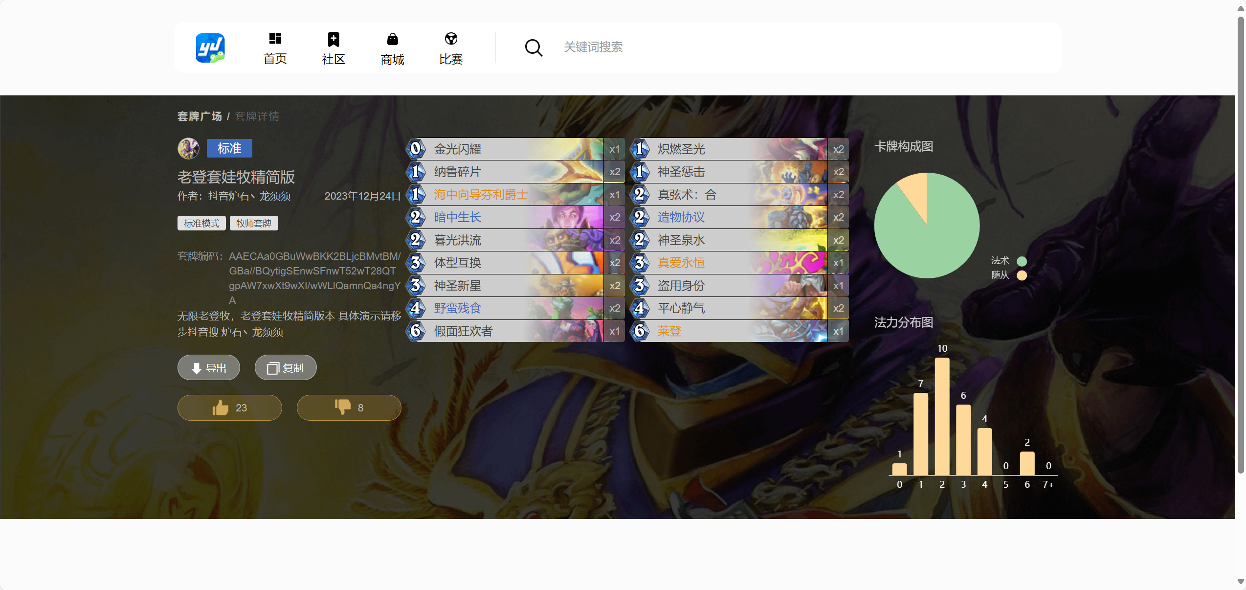申明:此卡组的思路和主要构筑来自营地,个人改进了下。