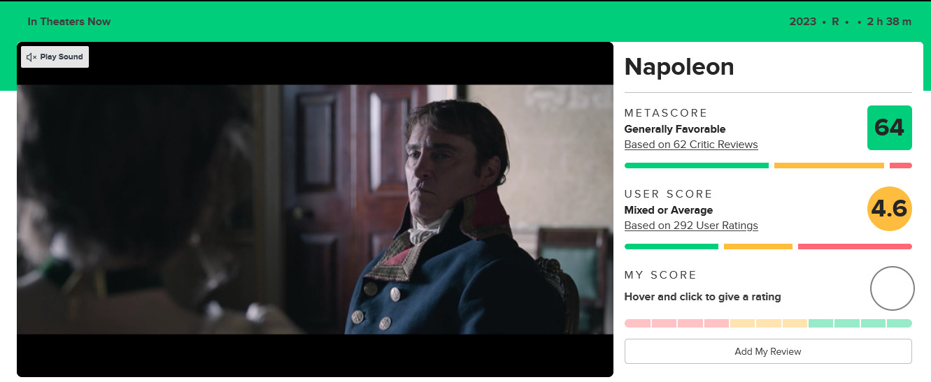 由 Ridley Scott 执导,凤凰叔 Joaquin Phoenix 主演的电影《拿破仑》全球票房已突破 2 亿美元大关。这部传记史诗截至本周二全球票房达 2.007 亿美元,其中 1.411 亿美元来自美国以外其他国家/地区,而美国国内票房则为 5960 万美元。