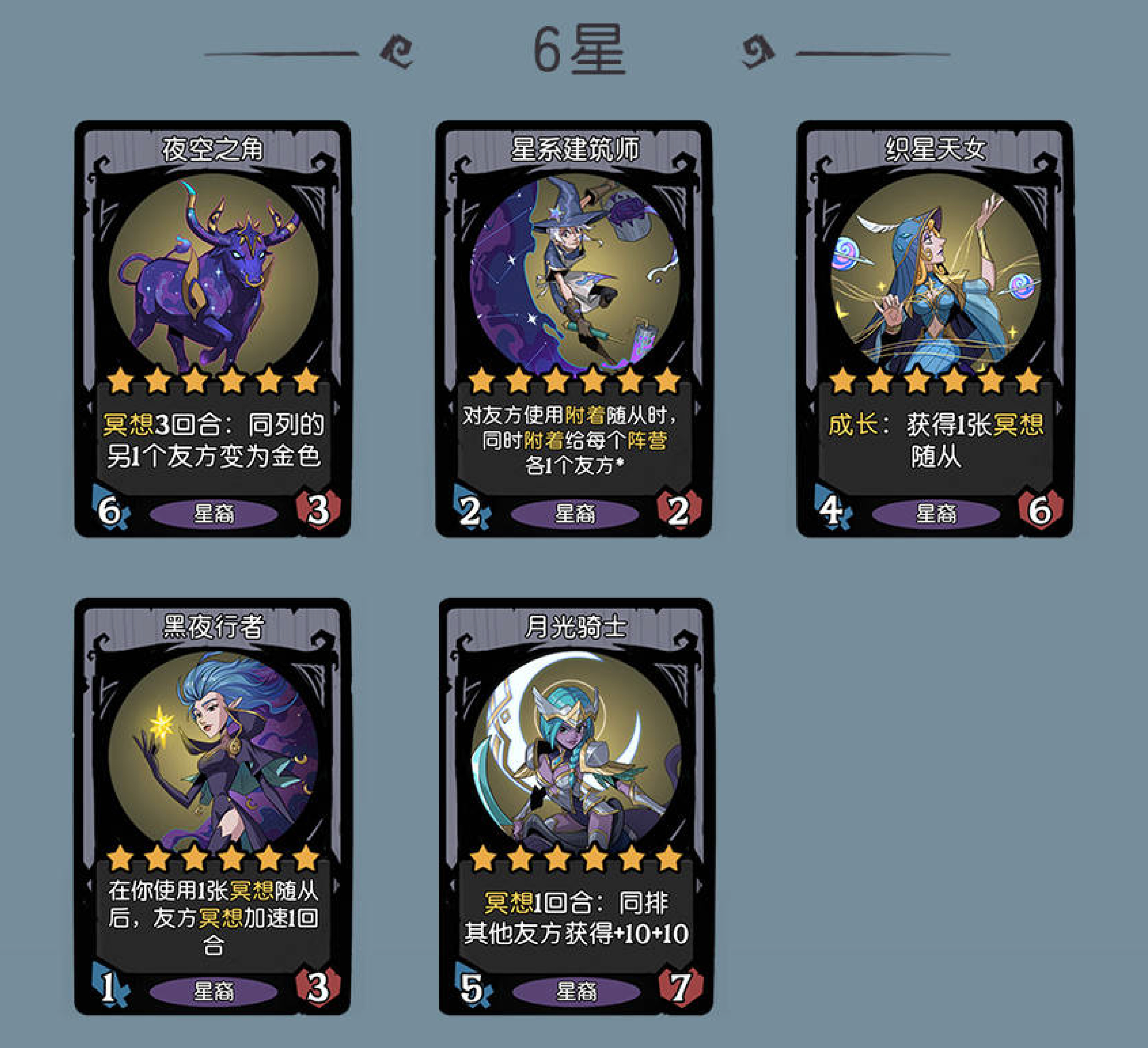 【月圆之夜·镜中对决】的新版本S2“星梦迷思记”上线,新增了一个阵营“星裔”和一个词条“冥想”,让我们在新版本更新之际,先简单聊聊新卡吧。