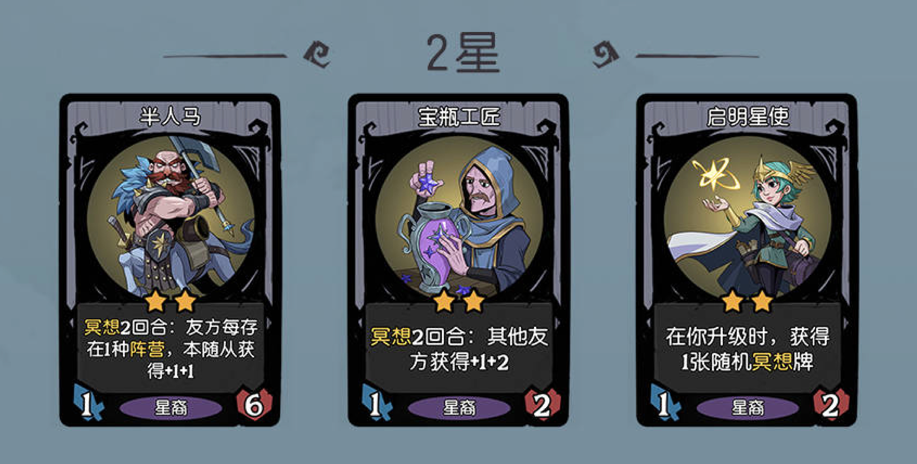 「祈星师」和「牧羊人」的身材较差,且延迟收益,所以一般不建议主动购买,开局如果选择大概率要损失血量。