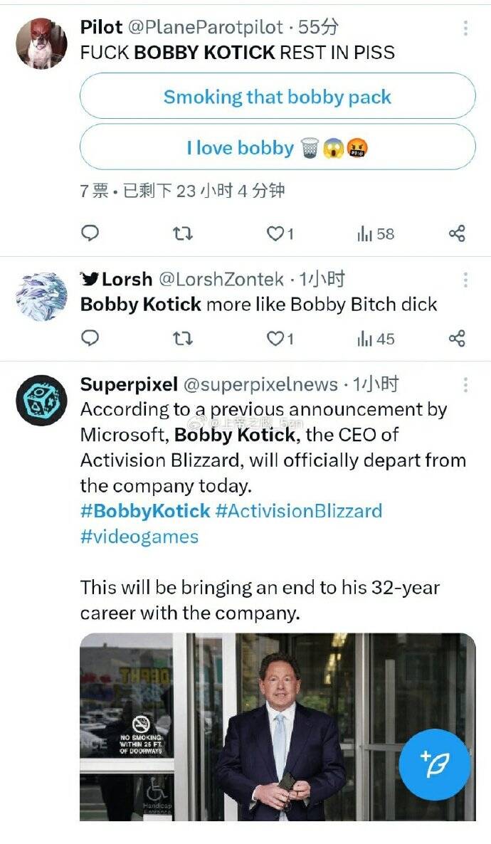 根据此前微软的公告,动视暴雪CEO 鲍比·考迪克 (Bobby Kotick)将于今日(12月29日)正式离职。今后动视暴雪的管理层将改由Xbox游戏内容和Xbox游戏工作室总裁 Matt Booty 负责,这些变化不会影响大多数员工的日常工作。