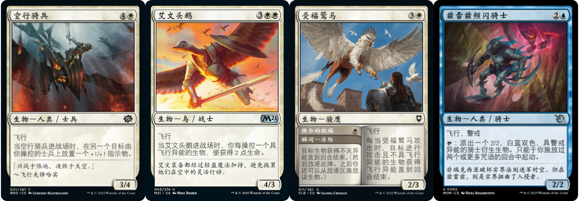 并非所有飞行生物都是好牌,给一个亏模身材的生物印上飞行也不能改变什么,尤其是中等费用的生物。如果有兹雷兹频闪骑士这样强力的异能,可以弥补这一点。