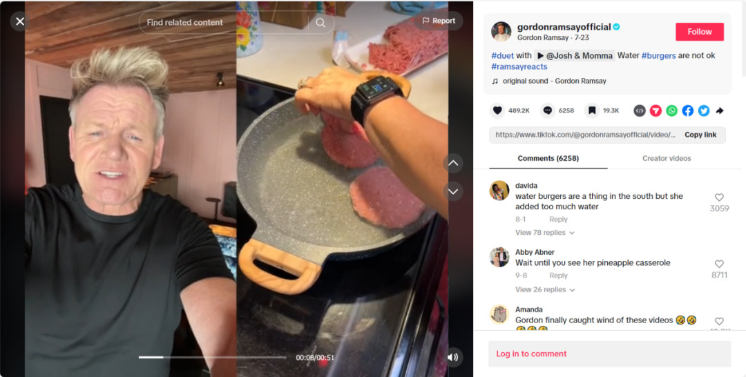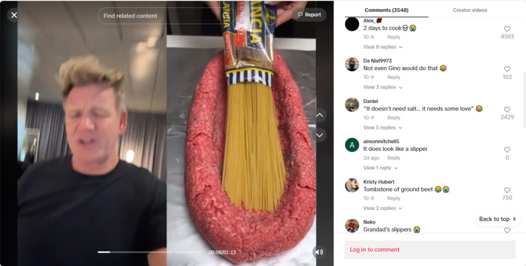 当然,这里没有鼓励大家将快乐建立在别人的痛苦之上的意思。写下这篇文章,是因为在选题枯竭的时候,看到了戈登·拉姆齐在TikTok上的吐槽而且真的很让人上瘾,看戈登受难也真的很好笑。