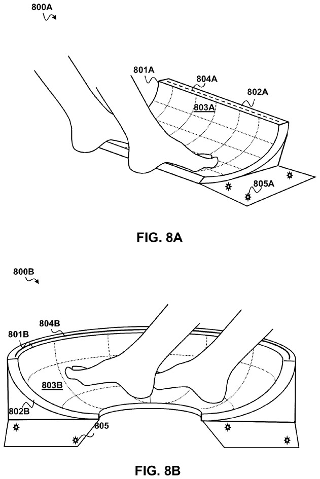 除了这个和轨迹球工作原理相似的设备,索尼还申请了另外一个含有触摸板的凹型脚用控制器,可用双脚进行操控。